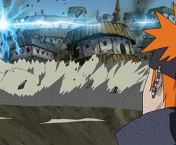 Смотря на дома которые затопило озером, людей живущих в голоде и бедности, питающихся рыбой из озера, которое непонятно насколько было загрязнено, Нагато все больше и больше убеждался что Амегакуре нуждается в спасителе, и хоть в баре он слышал, что кто-то вычищает улицы Амегакуре от бандитов, сама жизнь в деревне не менялась, что выводило Нагато из себя