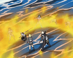 Неправильное оформление поста на убийство моба и неправильные ранги техник. Нет приписки, какого моба побеждаешь, нет двух техник В-ранга. Зазан потушила пламя и атакует Кишибэ совместно с Флаттер, урон будет повышенный.