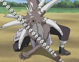 Они протянули свои мерзкие ручонки к ней и когда они были ближе, куноичи воспользовалась моментом и из её тела вырвались два рёбраТанец лиственницы