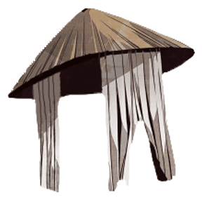 Ко входу здания приближался самурай, которого вела Анко. Легким движением головы он сбросил свою касуОдежда: Соломенная шляпа