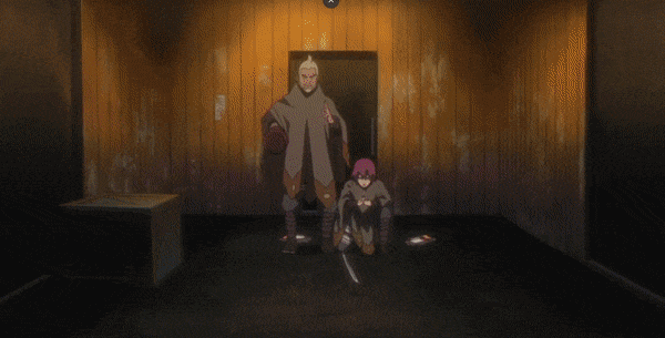 В этот момент Ибики уже подходил к стойке своим тяжелым шагом по древесному полу. Осмотрев парня, он кинул взгляд на Тошибу, и тот сделал жест зажмурившись два раза.